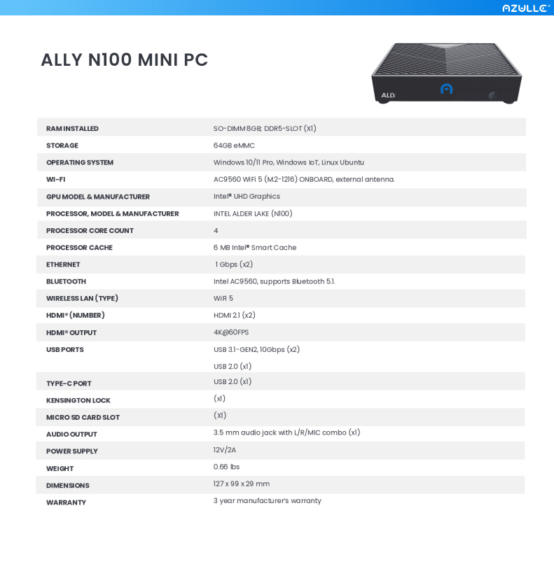 Azulle and Now Micro have teamed up to make Ally N150 easier to source, deploy, and scale. You can purchase the Ally N150 today through Now Micro, with access to tailored support and enterprise service options.